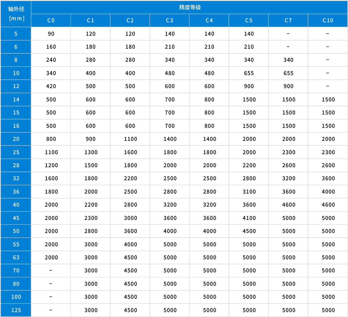 丝杠轴外径5~125mm 精度等级C0~C10级