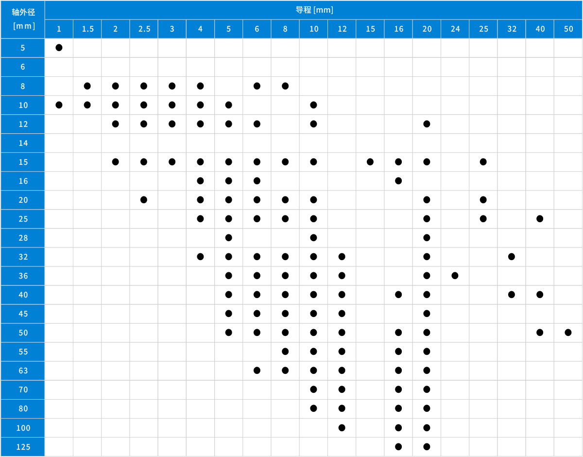 (注意)根据规格不同,可制作的长度可能与上表有所差异,详情请咨询我们。