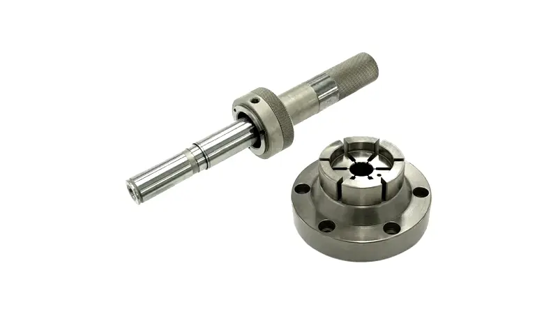 一种精密油压夹具,利用静态油压引起的弹性变形夹紧工件。以高的振动精度和重复精度为荣,用于精密齿轮和需要同芯度的圆形工件的加工·测定。