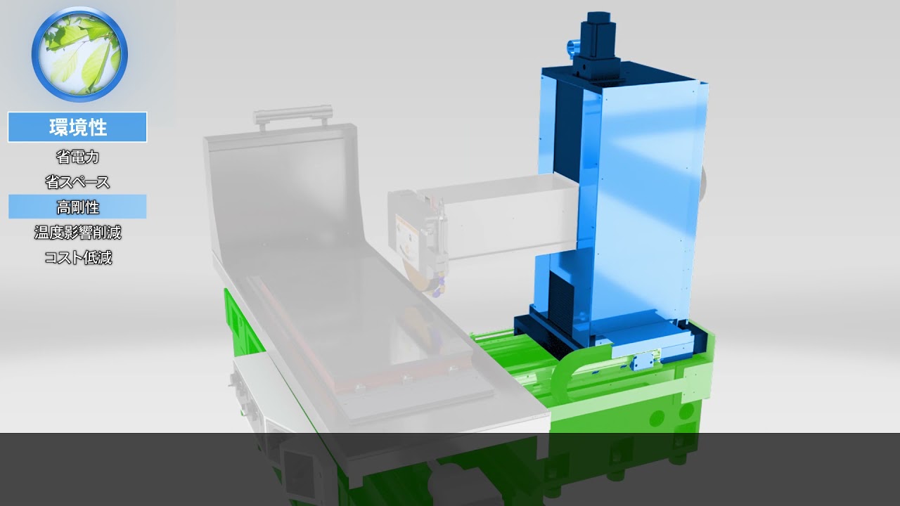 左右进给采用AC伺服马达,配合与自家公司生产的精密滚珠丝杆之驱动方式。大幅地见底了自由摩擦系数,实现了高效率的驱动。