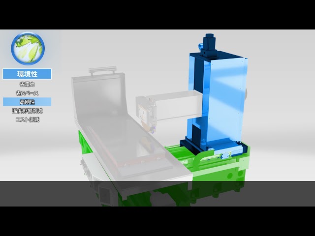 左右进给采用AC伺服马达,配合与自家公司生产的精密滚珠丝杆之驱动方式。大幅地见底了自由摩擦系数,实现了高效率的驱动。 - 高速·高精度左右反转