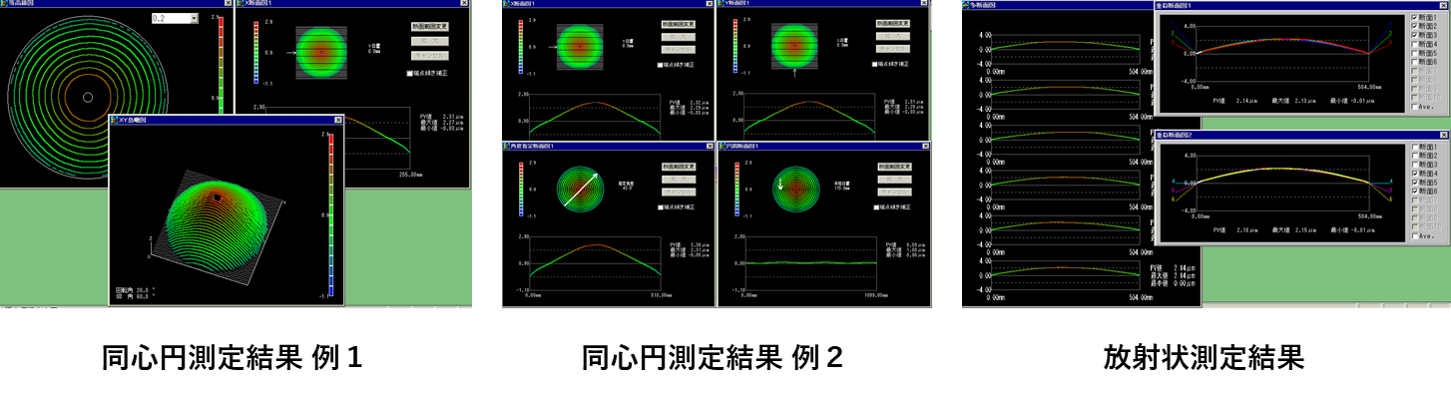 同心圆测量:可设定测量范围、Pitch、回转数。可设定同心圆形的测量范围。最适合详细评价。