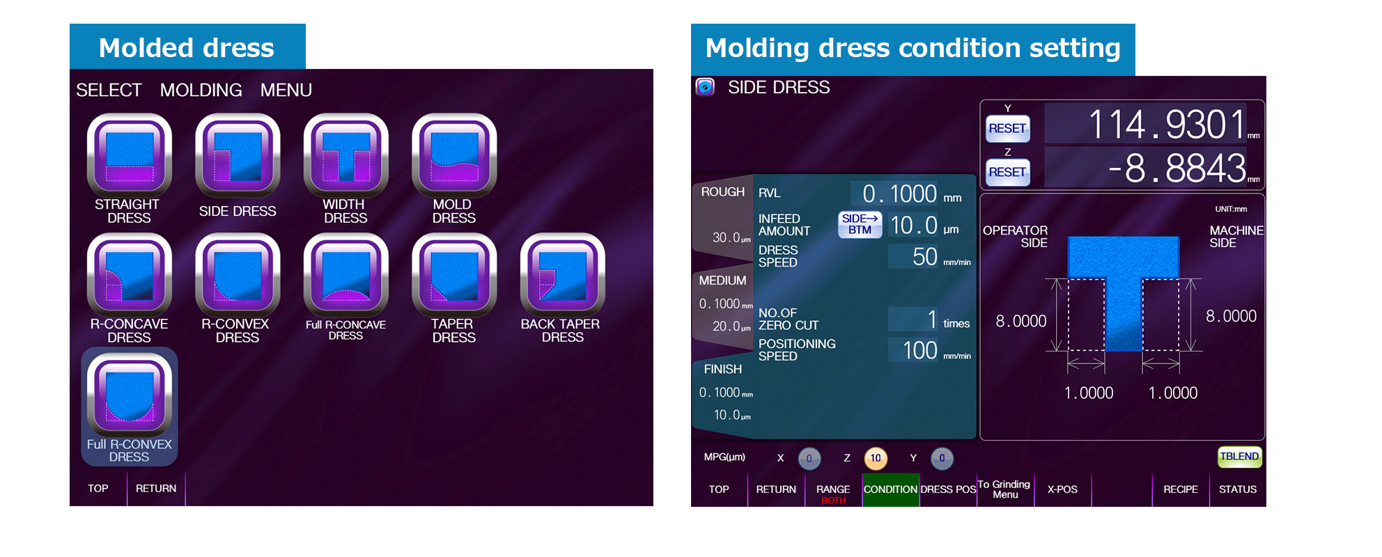 You can reproduce and automate the form grinding process of skilled operators. It also enables a variety of form dressing of grinding wheels with simple operation, regardless of skills of operators.