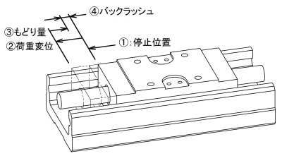 Backlash appears as a gap in the axial direction of the slide block when the operating direction is inverted or an external load is received. However, its impact is small if the axial load is always from the same direction, (vertical load, for example) or no load is applied from the outside after stop. Note that in "repeated positioning accuracy and positioning accuracy" explained in What are the items that make up a ballscrew actuator's accuracy? (1), positioning was always performed from the same direction to measure accuracy by minimizing the impact of backlash.