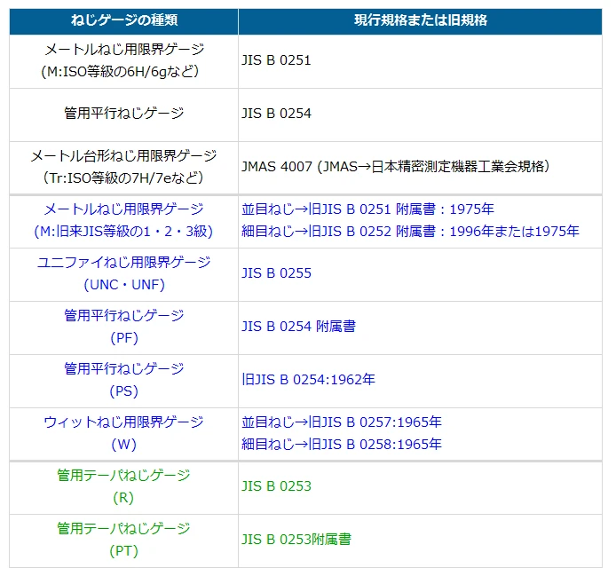 Common thread gauges are as shown in the table below. Please refer to each one.