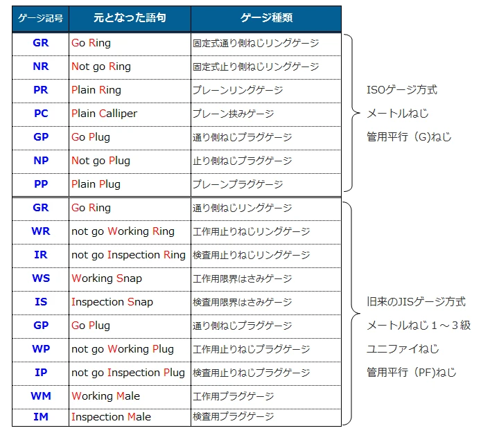 What do the gauge symbols (GP, NP, PP, etc.) in thread gauges mean?