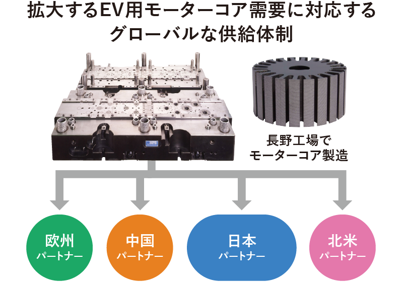 世界的なラミネーションメーカーである「EURO GROUP S.p.A」(伊)と世界的規模での提携を開始。同社の世界的な製造・販売ネットワークを駆使することで、モーターコアをはじめとするラミネーション製品をグローバルにご提供します。