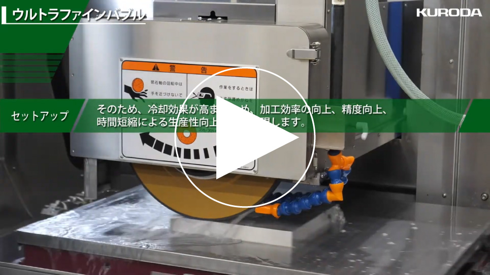 微小な泡(ウルトラファインバブル)を含んだ研削液で加工効率が飛躍的に向上。冷却効果を高め、加工時間の短縮や寸法精度の向上を実現します。