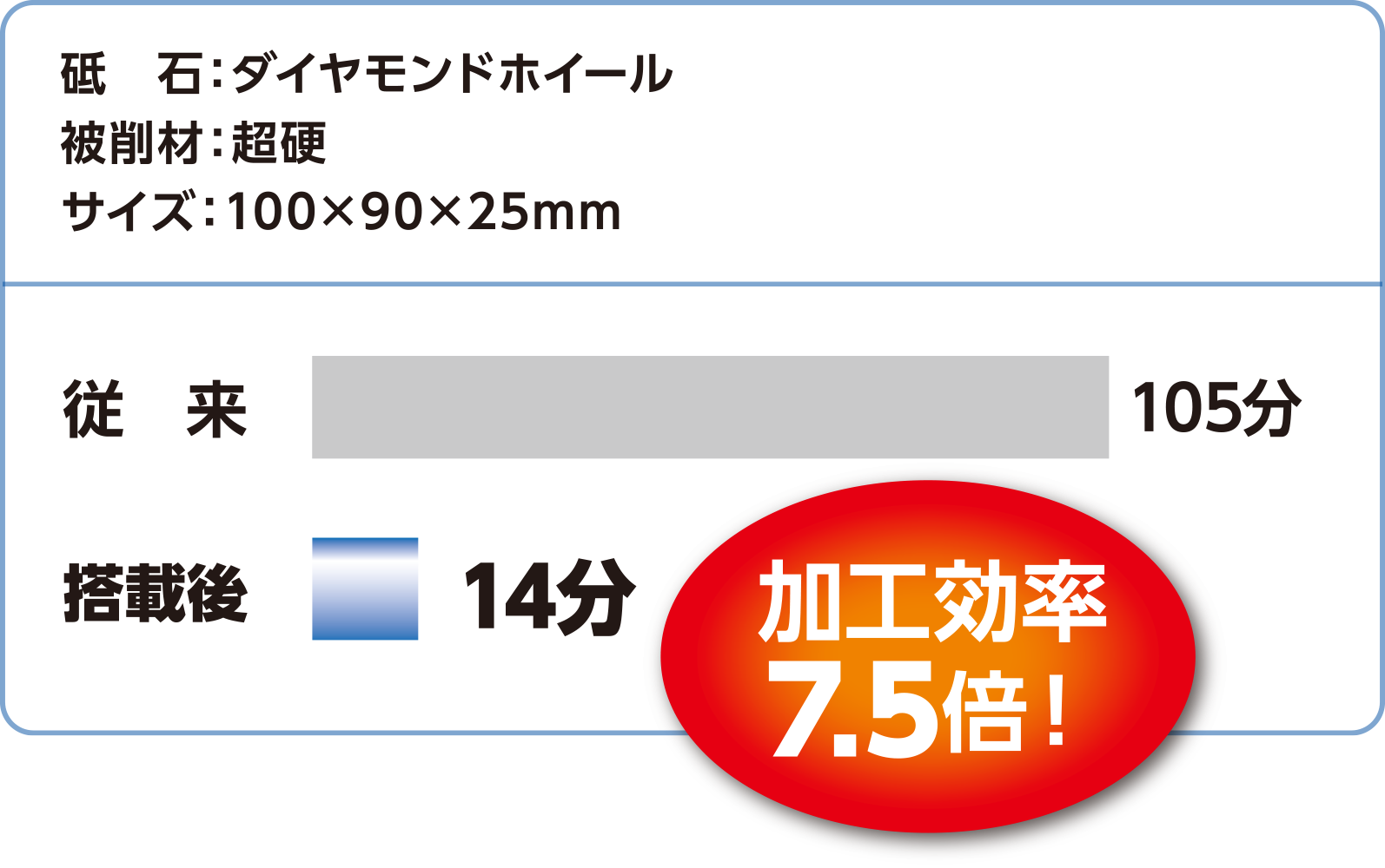 砥石の切れ味が持続することにより、砥粒の脱落が減少、ドレスインターバル(ドレス頻度)も少なくなるため、砥石の寿命が伸びます。