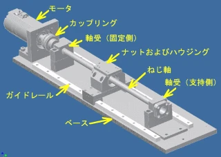 従って一般的なボールねじを含む直線運動機構は、ボールねじ+ガイドレール+動力源(モータ)の構成をとります。これは精密な工作機械もUFOキャッチャーなどのアミューズメント機器も同じです。