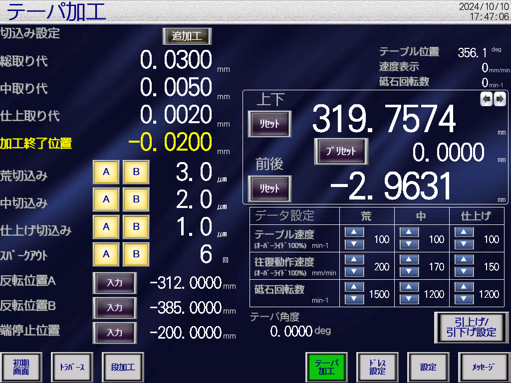 테이블 경사 ±5° 범위에 대응. 화면 조작으로 원하는 테이퍼 각도를 쉽게 설정할 수 있습니다.