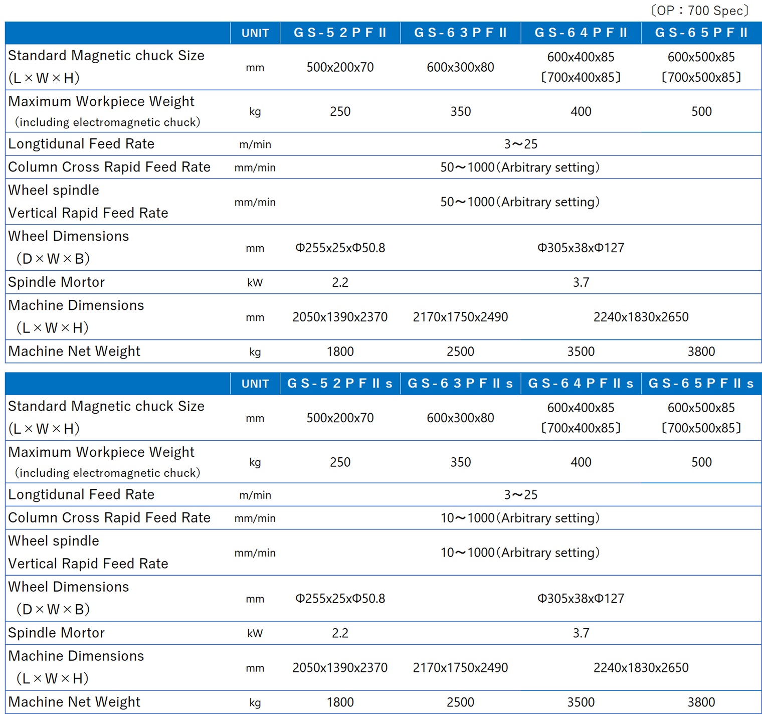 - 마그넷 척 사이즈 700x400mm, 700x500mm 사양도 대응 가능