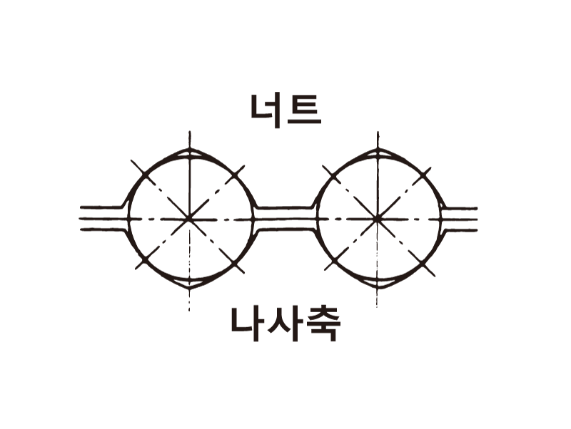 너트 1개로 예압을 주는 방식입니다. 너트의 중앙위치(순환부사이)에서 예압하중상당분만큼의 리드를 어긋나 예압을 줍니다. 보통 예압에 적합합니다.