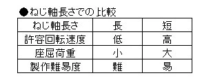2개의 같은 축경의 볼스크류를 비교했을 경우, 일반적으로 이하로 말할 수 있습니다.