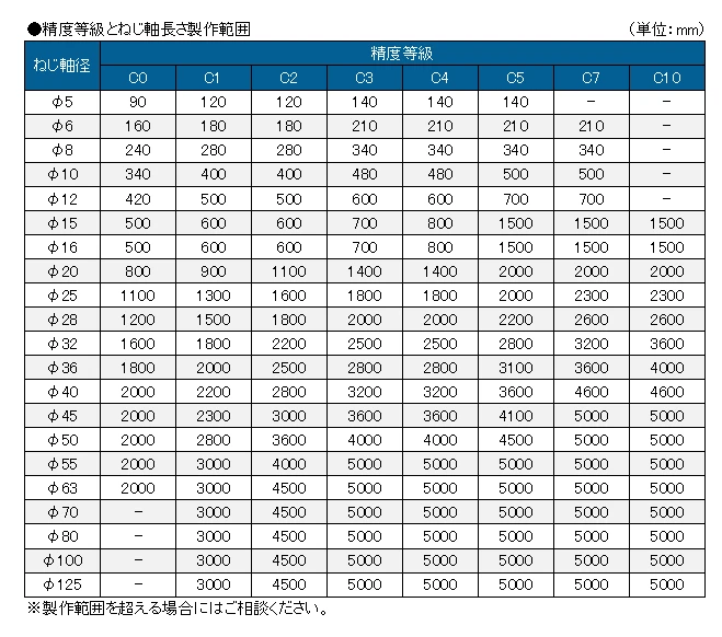 볼스크류의 길이 제한은 JIS규격에서는 특별히 규정되어 있지 않습니다.
