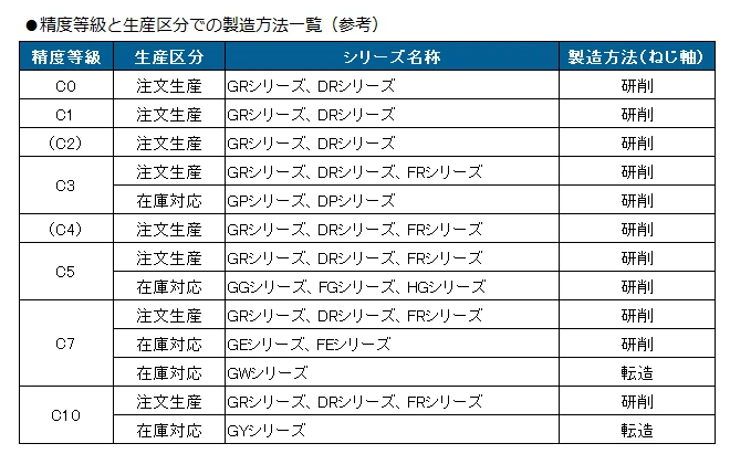 제조방법은 정밀도 등급이나 생산구분(재고품, 주문생산품인지)에 따라 다르며, 실제로 각각의 제품에 맞는 제조방법을 적용하여 생산하고 있습니다.